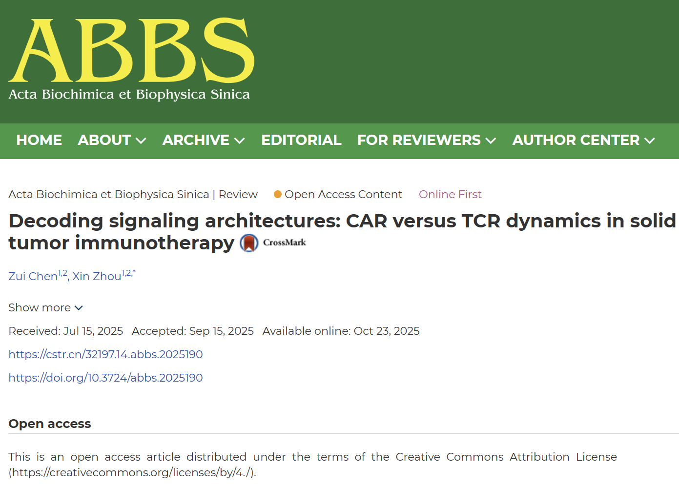 This article is based on the review "Decoding Signaling Architectures: CAR vs TCR Dynamics in Solid Tumor Immunotherapy" published by Researcher Xin Zhou's team in Acta Biochimica et Biophysica Sinica. It aims to popularize cutting-edge progress. Please be sure to follow the guidance of your attending physician for specific treatment plans.