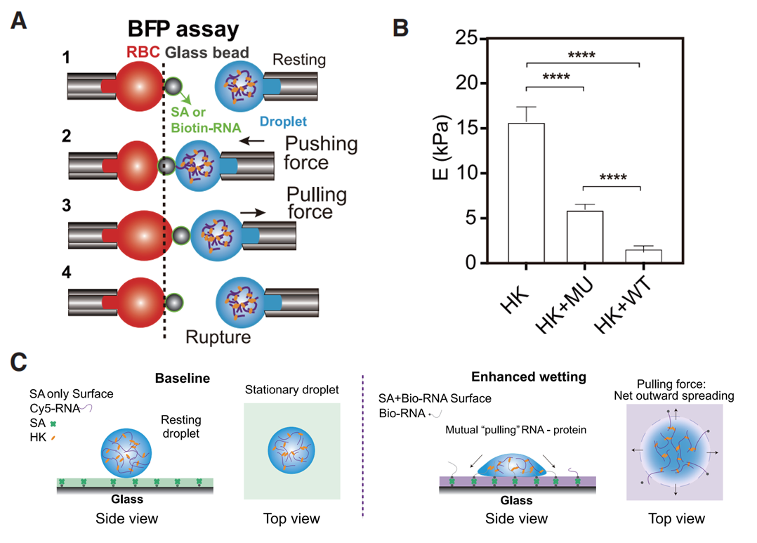 图4. RepB可以增加 HNRNPK 凝聚体的可变形性且二者之间存在相互吸引