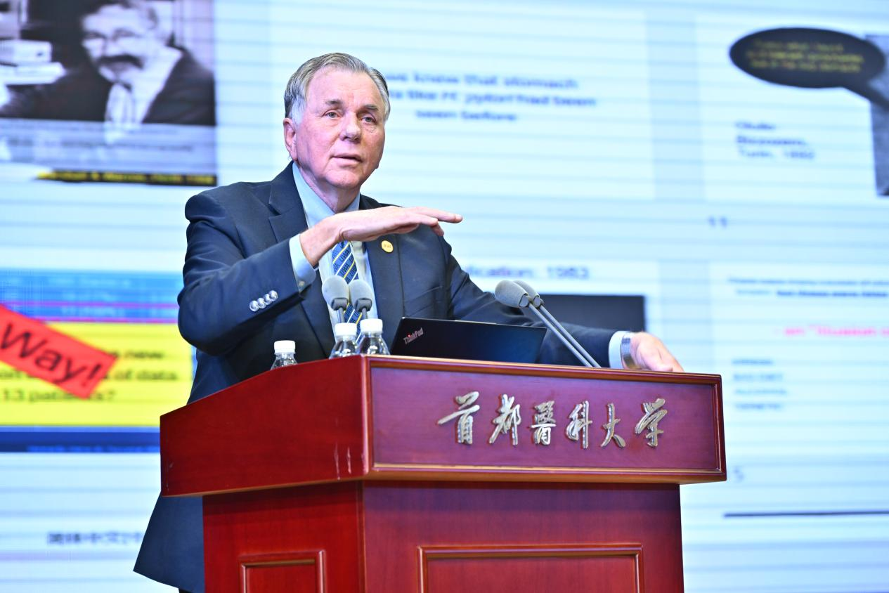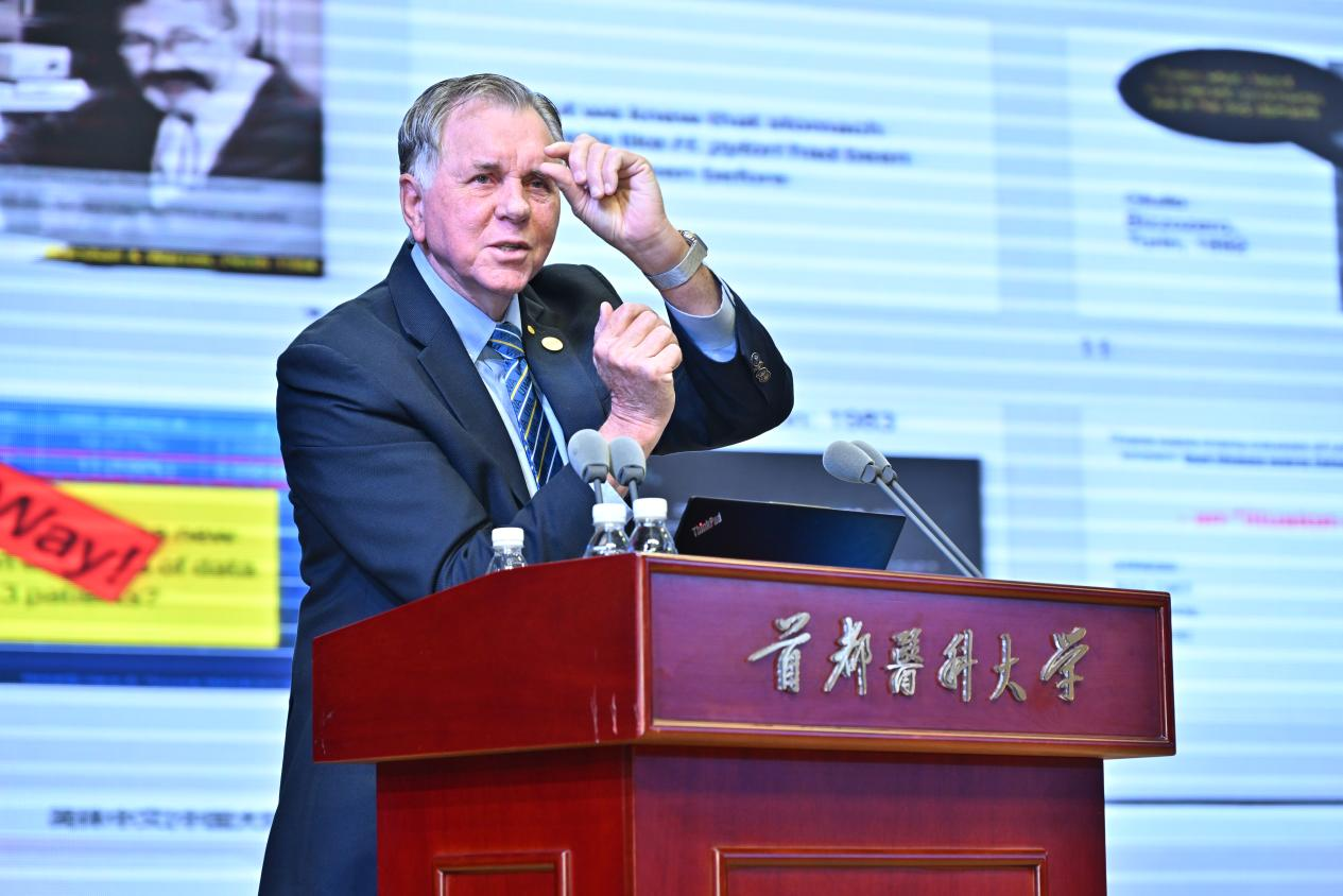 讲座伊始,张罗代表学校向马歇尔教授的到来表示欢迎。他高度评价马歇尔教授在医学领域的划时代发现,以及其在推动中外医学学术交流、增进国际医学合作方面作出的卓越贡献。他指出,马歇尔教授团队的发现革新了胃溃疡的临床治疗方案,产生了不可估量的公共卫生价值与社会经济效益。他希望以此次讲座为契机,拓宽首医师生国际学术视野,深化学校跨国界医学科研协作,为守护人类健康、构建人类卫生健康共同体贡献首医力量。