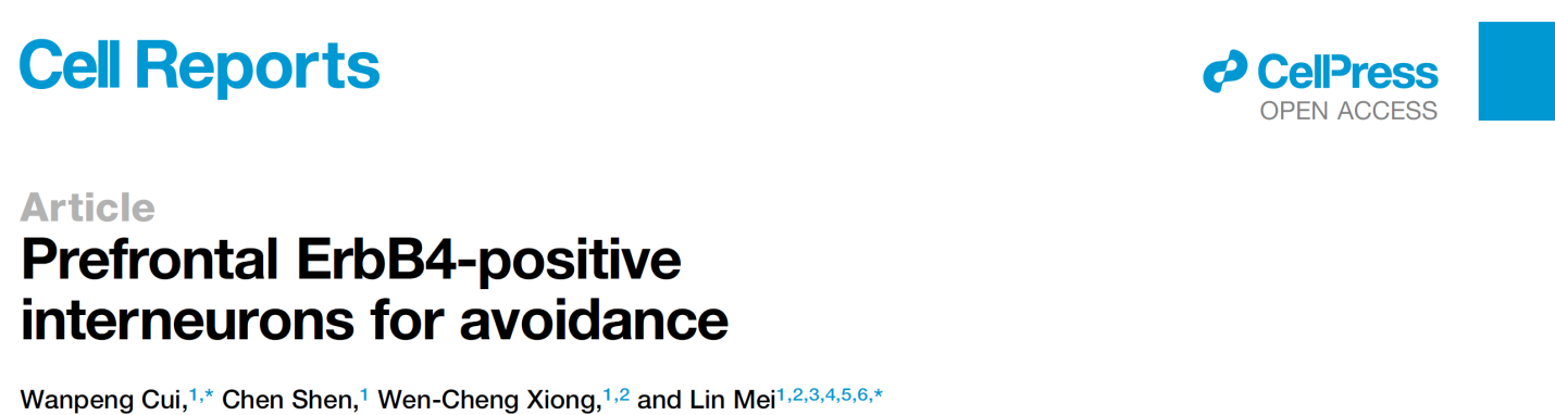 Recently, Professor Lin Mei's team from Chinese Institutes for Medical Research (CIMR), Beijing published an article  titled "Prefrontal ErbB4-positive interneurons for avoidance" in the journal Cell Reports.